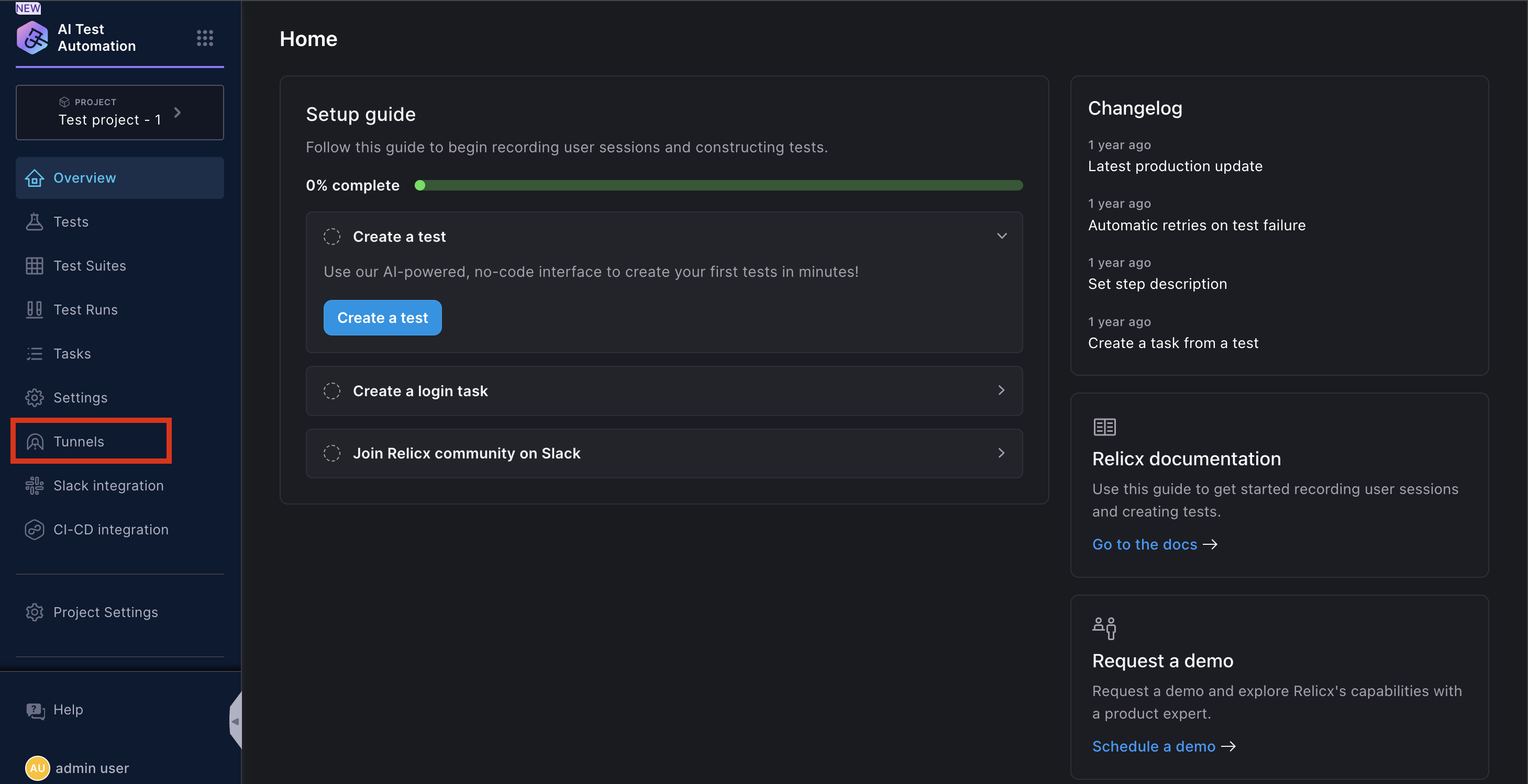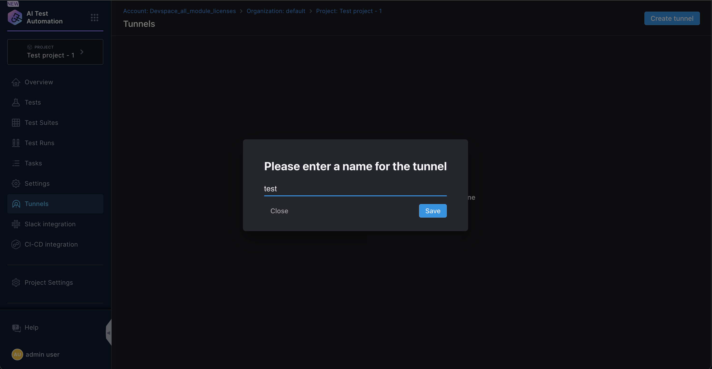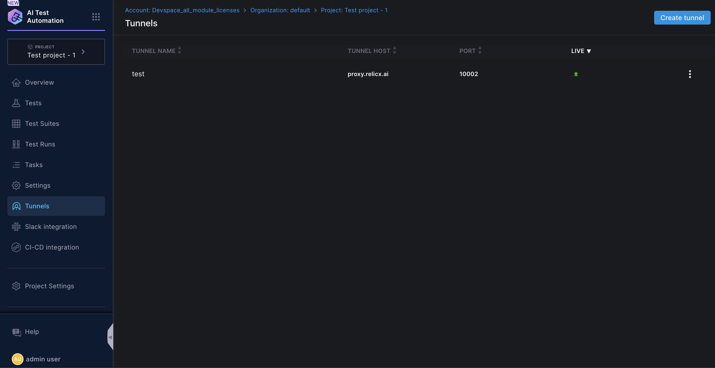 To create a private location, click on “Tunnels” on the navigation bar and the “Create Tunnel” button on the top of the Tunnels page.