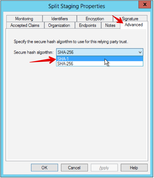 17. Select SHA-1 for the Secure hash algorithm, and then click Apply.