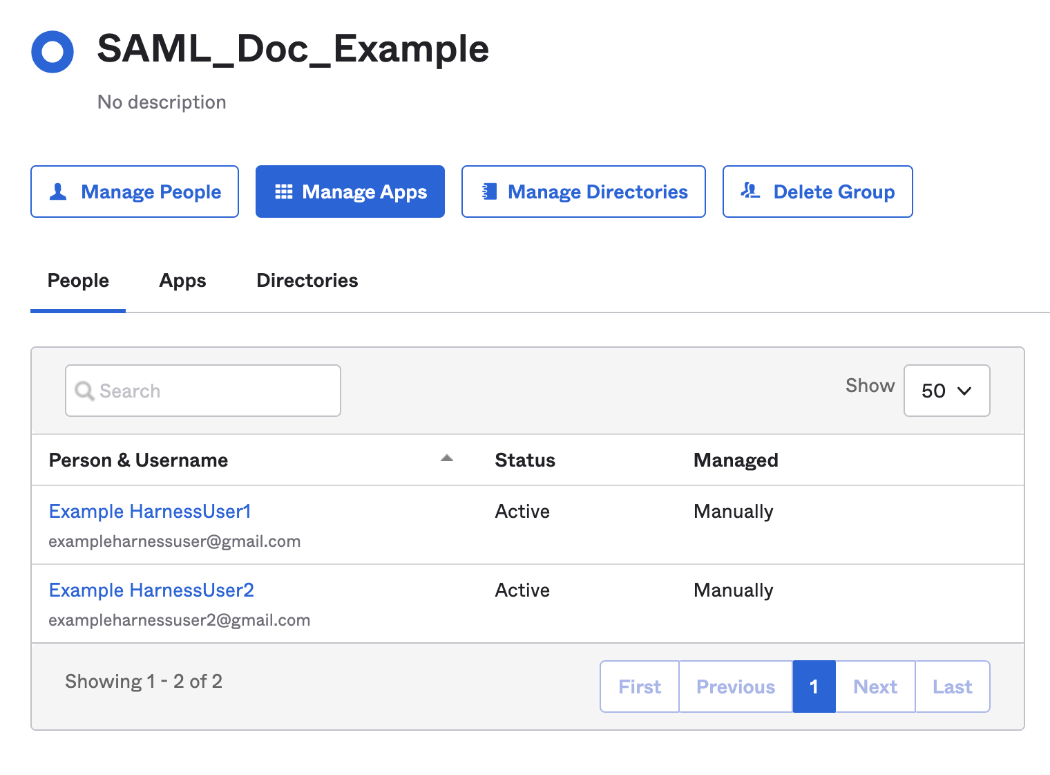 To set up a SAML support in your Okta Harness app, ensure that the app has corresponding Users in Harness: