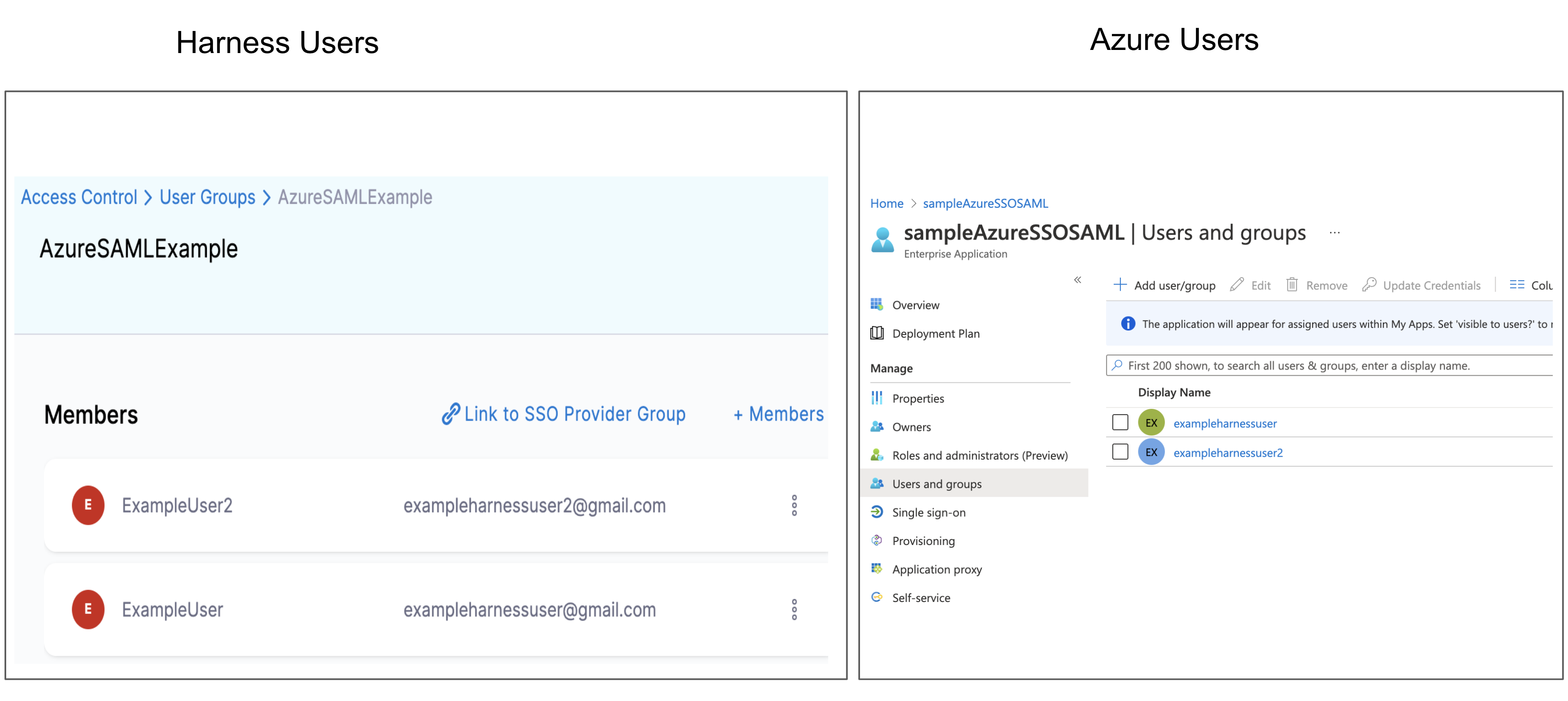 - Harness User email addresses: Users are invited to Harness using their email addresses. Once they log into Harness, their email addresses are registered with Harness as Harness Users. To use SAML SSO, Harness Users must use the same email addresses to register in Harness and the SAML provider.