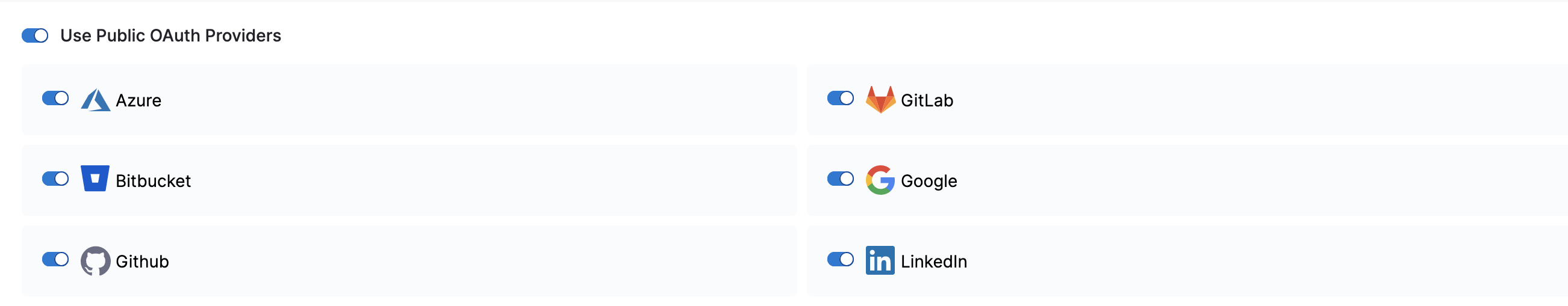 Enable each public OAuth 2.0 provider you want to use for SSO.