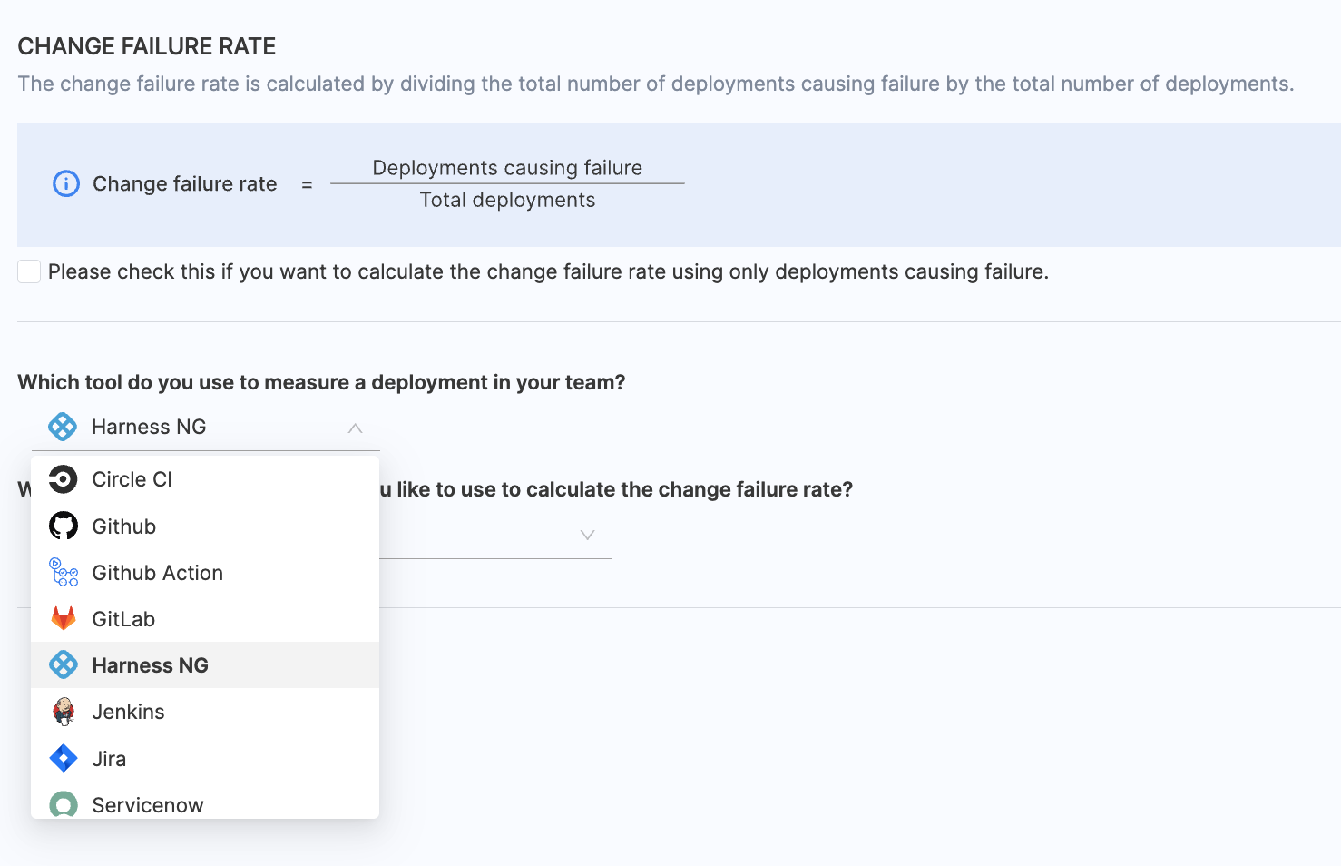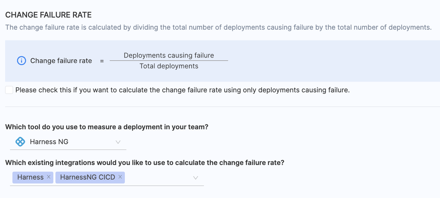 - Choose Harness CD as the tool to identify failed deployments within your team.