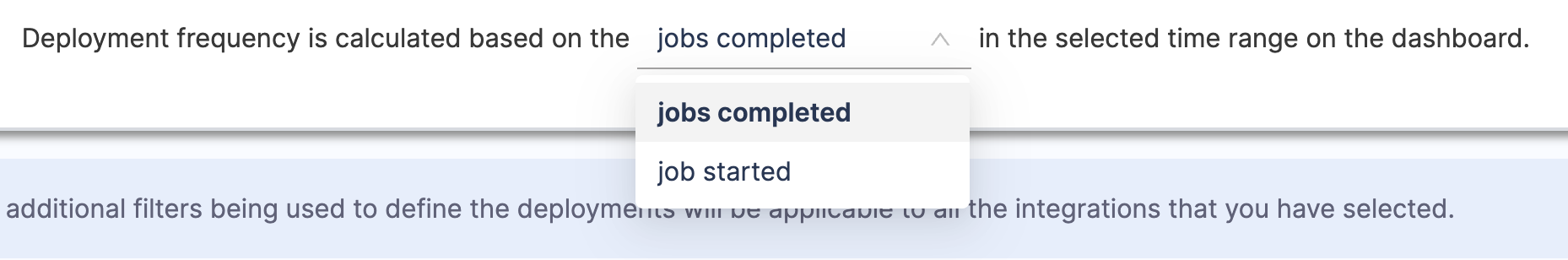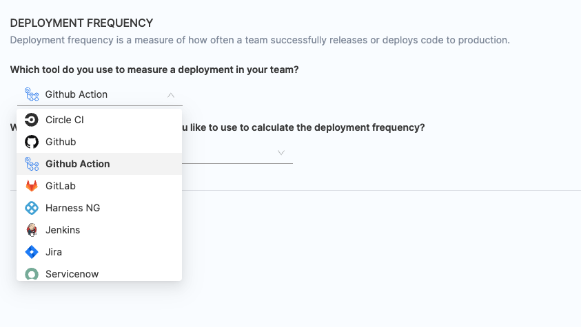 Similar to the deployments causing failure definition, you can configure the definition for measuring total deployments. This definition may align with the DORA Deployment Frequency definition. However, note that the total deployments are not linked with Deployment Frequency and are tracked separately for Change Failure Rate calculations.