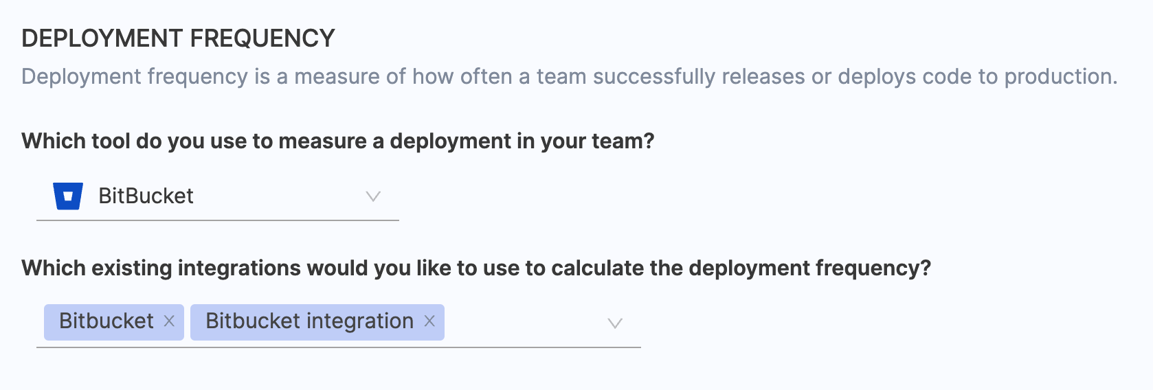 - Choose BitBucket / BitBucker Server as the tool that you use to measure change failure rate in your team.