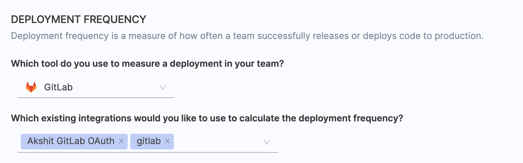 When the integration is configured with GitLab SCM, specify whether deployments causing failure and total deployments are defined based on Pull Requests (PR) or Commits.
