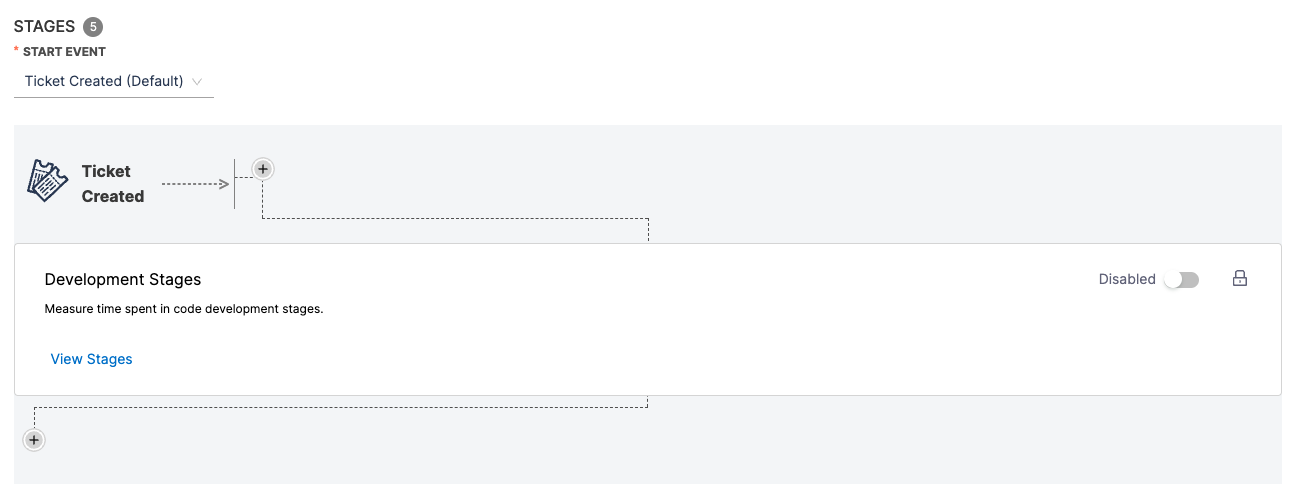 - Default development stages (tracked via your SCM) are by default configured. You can enable or disable these as needed.