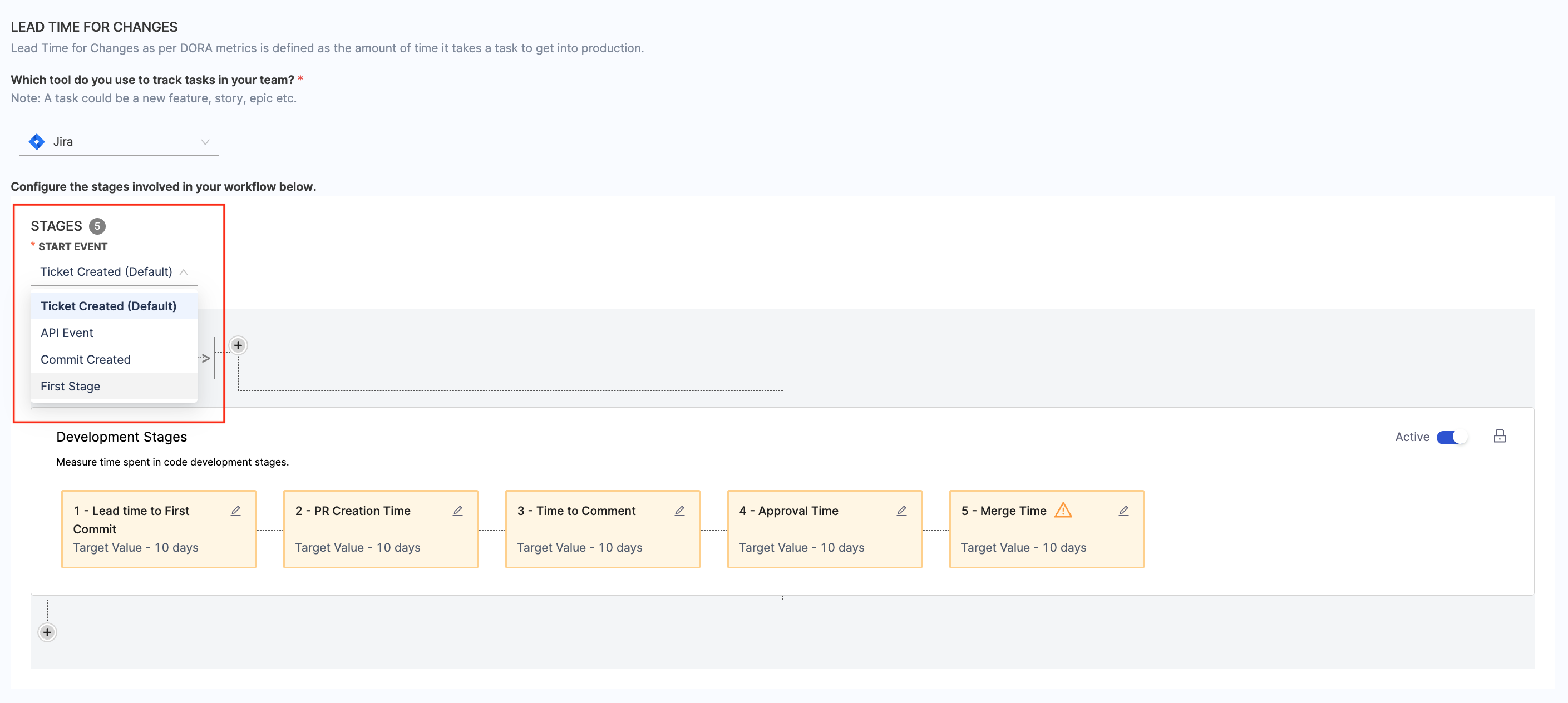 You can enable or disable these stages individually based on your organization's specific lead time calculation needs.