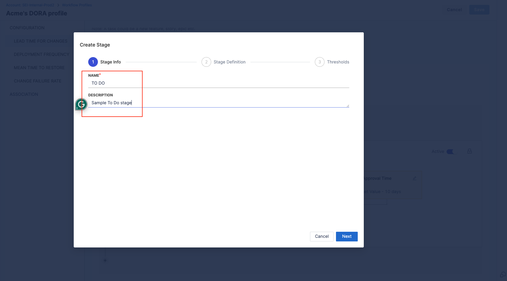 - Choose DORA Profile as the Workflow profile type.