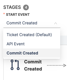 - Select Commit Created as the start event to trigger Lead Time tracking when the first commit is made for a pull request.
