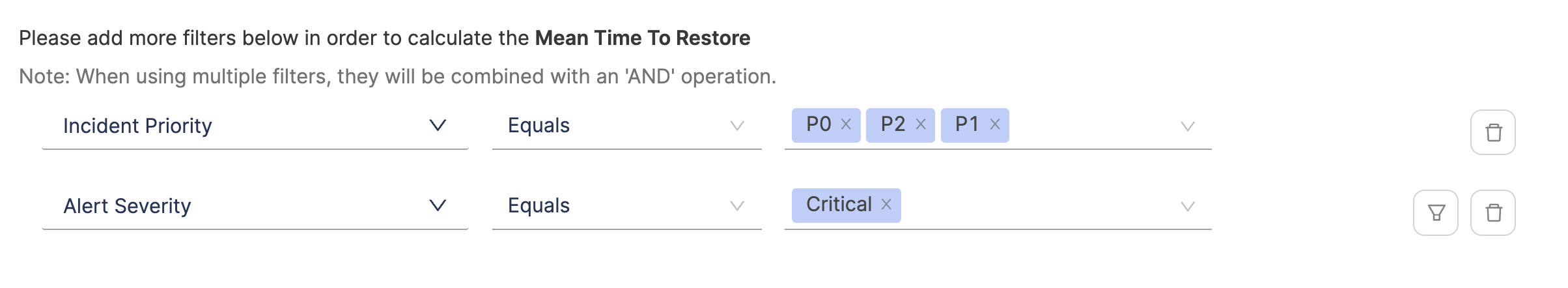 - Define additional attributes to identify deployments causing failure and total deployments. When using multiple filters, they will be combined with an 'AND' operation.